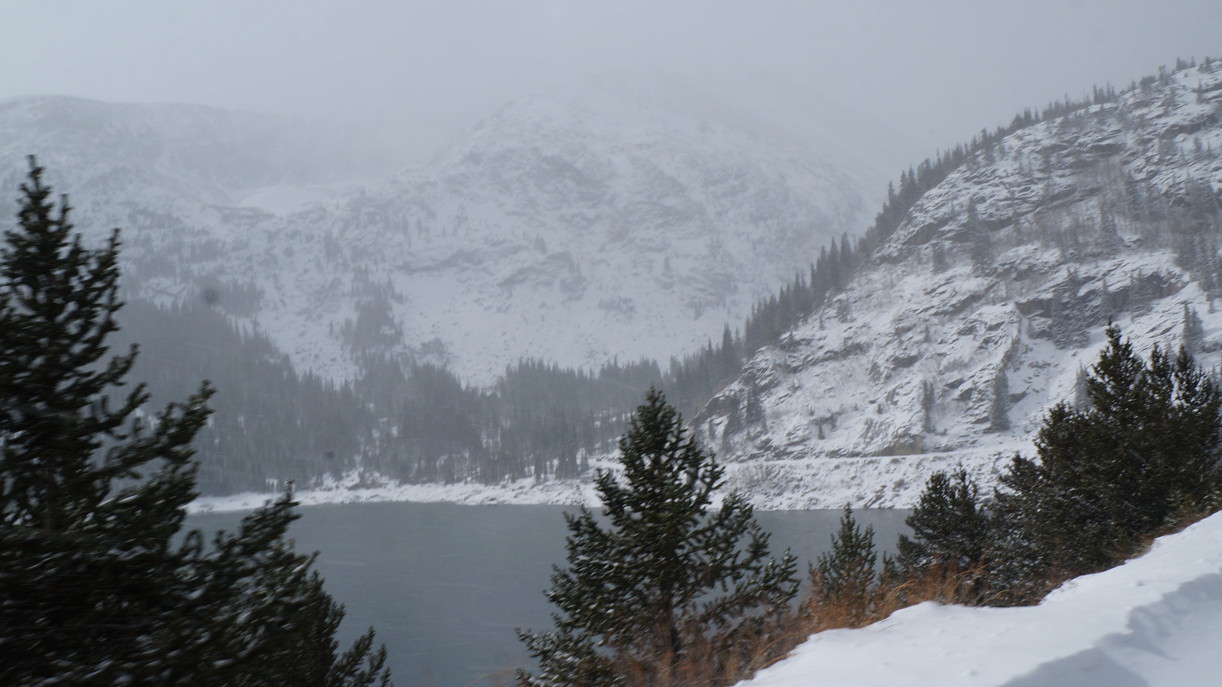 How quickly time flies in CO, or perhaps I should say how quickly the summer disappears. It seems only yesterday the snow had melted and it was warm enough to run in shorts, and now we’re back to feet & feet of snow. Leaving Denver in the morning, it was just cold but during the two hour drive to Fairplay, it somehow turned into a winter wonderland with icy roads and snow-coated trees. We would’ve gone further but a friend brought an adorable puppy who literally swam through the snow with all the excitement of a toddler, but very shortly was exhausted enough to the point where he required carrying.